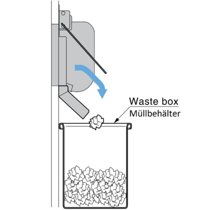 - Ohjaa tavarat turvallisesti säiliöön, jonka etäisyys on 94 mm (3–45/64″) roskaläpästä