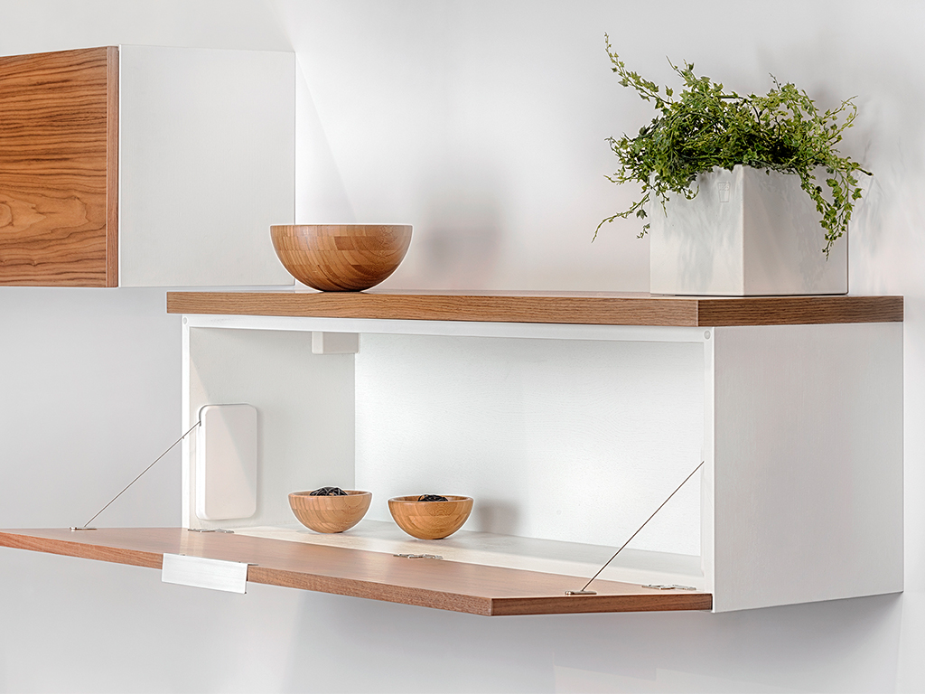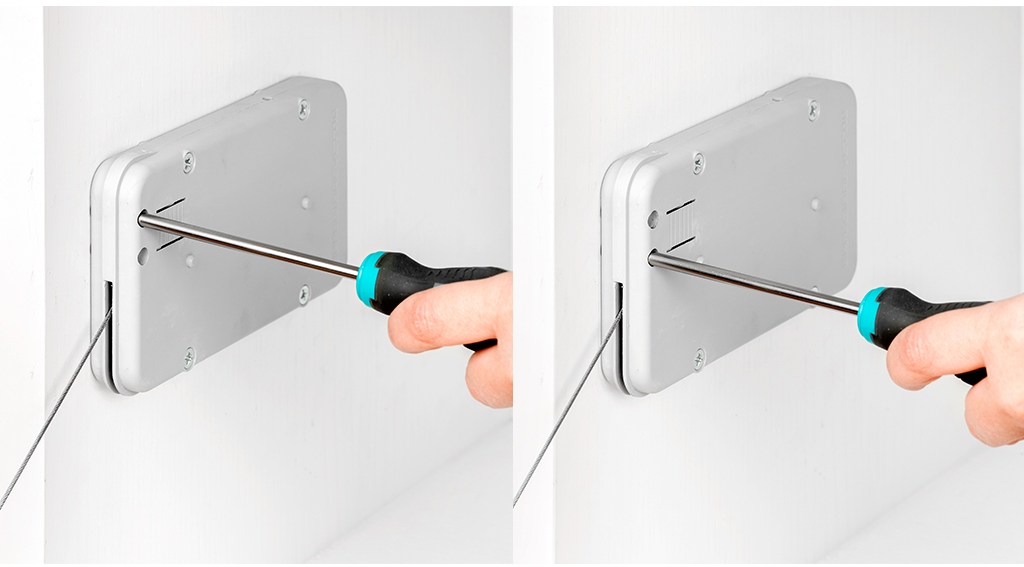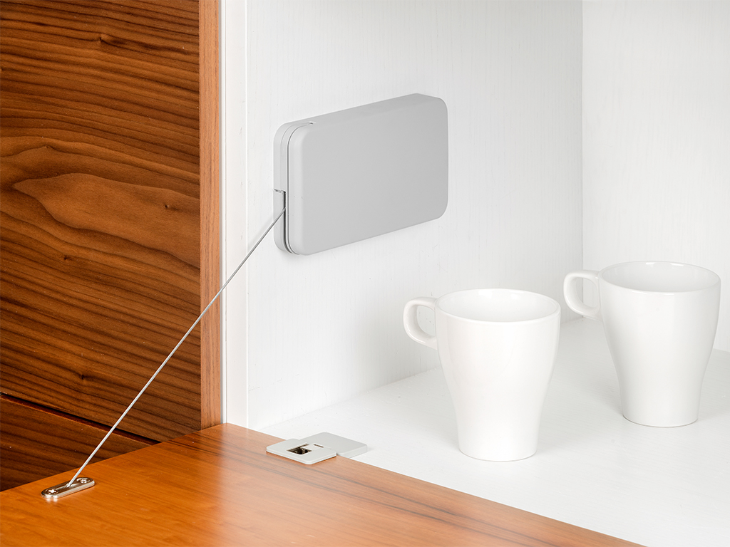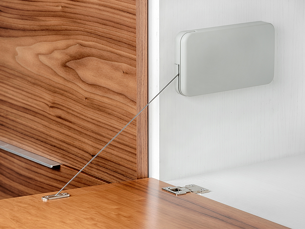Huonekaluläppien ja tankoosastojen kaapelivedolla varustettu läppäliitin voidaan asentaa 1009521 paitsi vaakasuoraan myös pystysuoraan, mikä tarkoittaa, että sitä voidaan käyttää myös kaappeihin, joiden syvyys on 180 mm (7-3/32″).