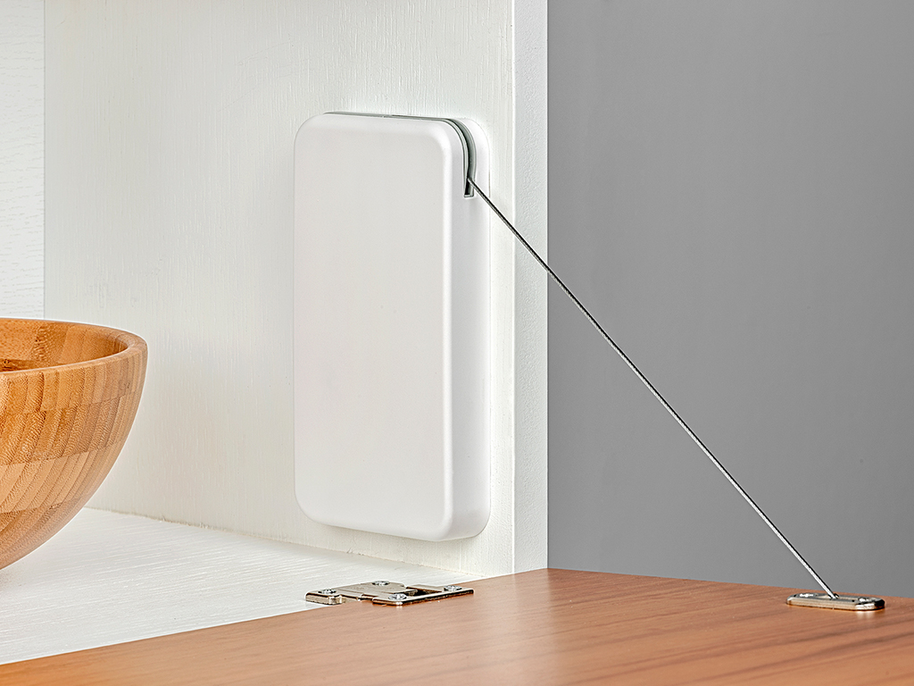 Laadukas tankotilan läpän pidike pehmeästi sulkeutuvalla pellillä ja itsesulkeutuvalla mekanismilla, sis. Peitekorkki ja kiinnitysruuvit, EMUCA, kantavuus: 4 kg, harmaa. Sovellusesimerkki