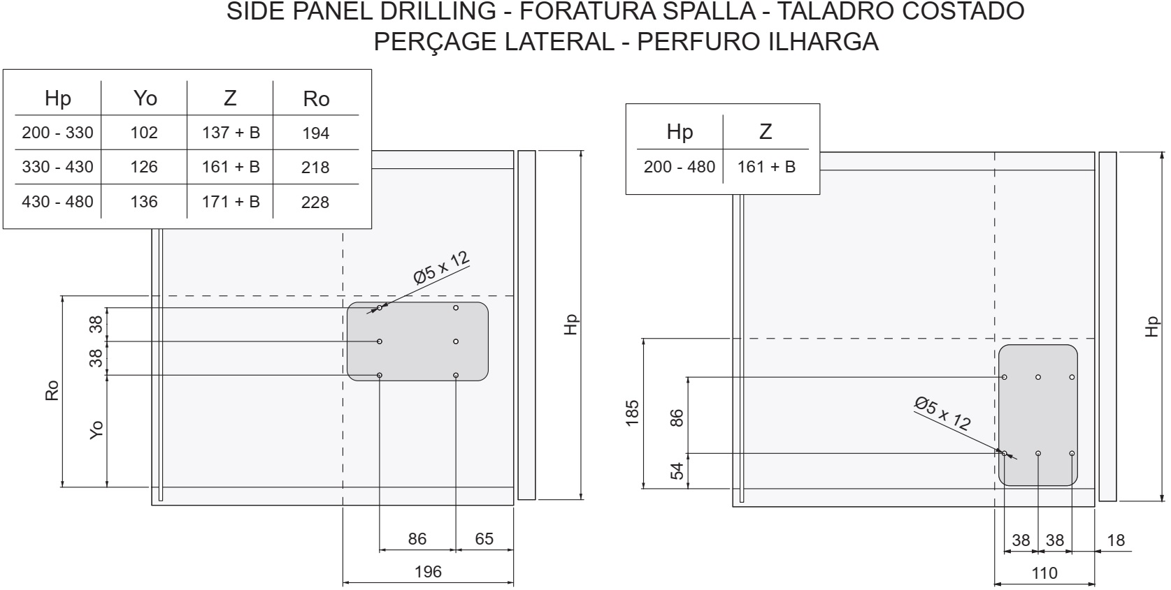 • Vetolangan läpän pidikkeen asentamiseksi rungon seinään on porattava kuusi reikää