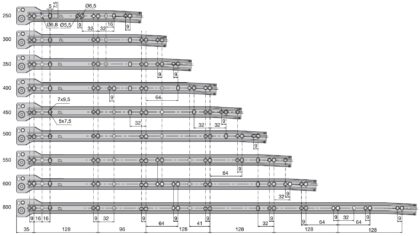 Teräksiset ohjauskiskot, osittain jatkeella, puiseen laatikkoon, hyllyyn, puiseen laatikkoon, keittiökalusteisiin, toimistokalusteisiin, kodin huonekaluihin.