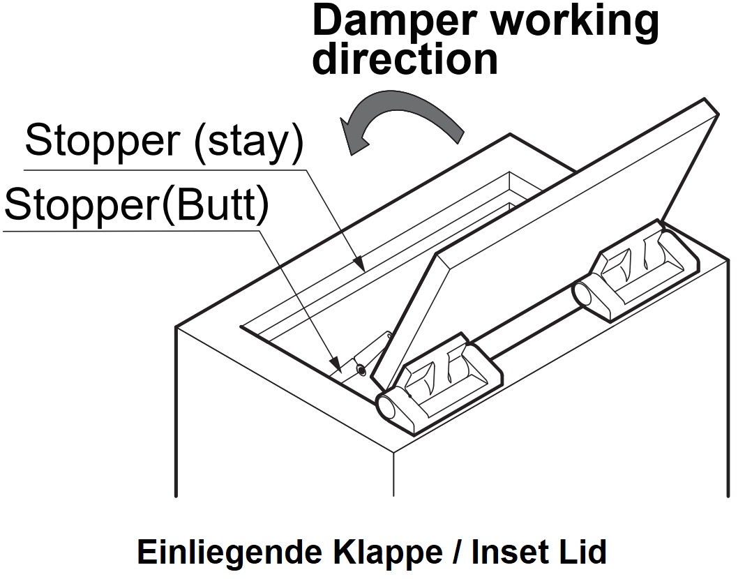 Läpän saranat tulee kiinnittää siten, että vaimennusvaikutus syntyy saranaa avattaessa (katso sovellusesimerkit ).