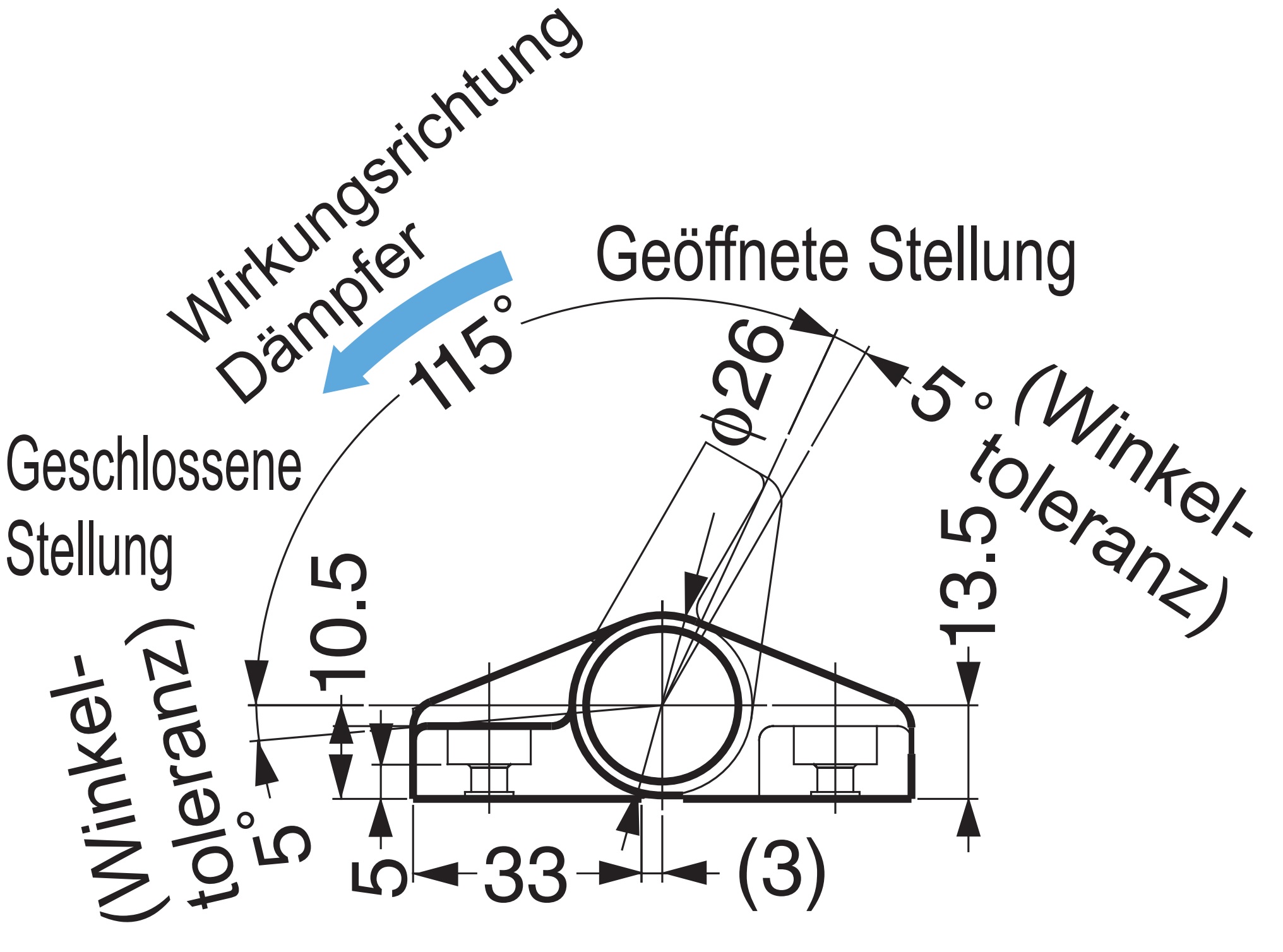 Soft-Close-tehokkaassa vaimennuskulmassa 0-115° läppä tulee tukea rajoittimella tai kaapin reunalla, jotta sarana ei pääse kaatumaan.
